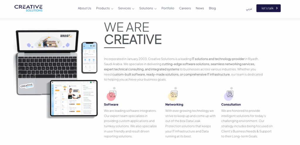 Creative Solutions is a Riyadh-based tech company that’s been building websites, mobile apps, and business software since 2003. They offer a full range of services—from web development and design to IT infrastructure, ERP systems, and cloud hosting.